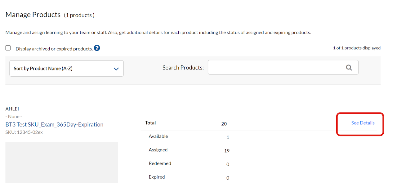 Find the product you need to transfer and select See Details.