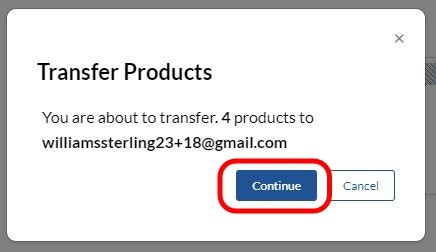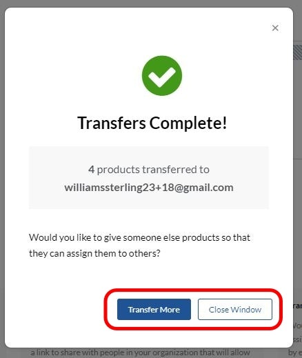 Once your transfer is complete, you have the option to close the window or transfer more products.