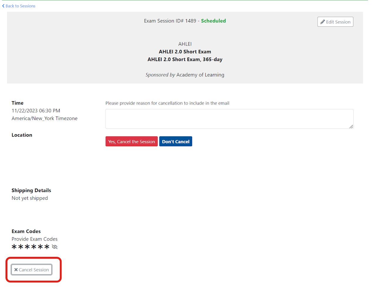 Cancel an exam session