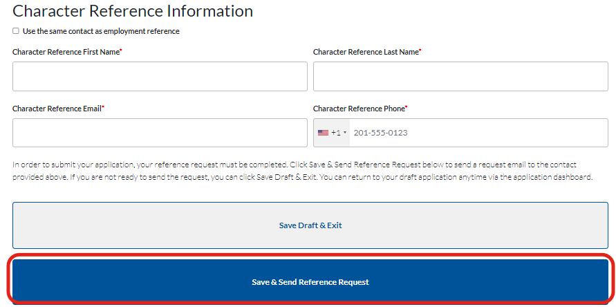 Once completed, select Save & Send Reference Request.