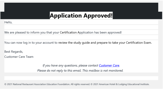 You will receive an email informing you that your application was approved.