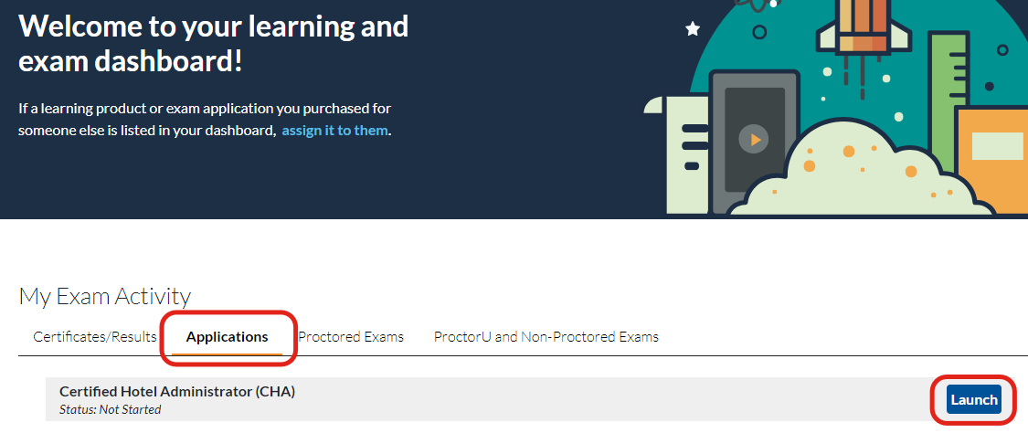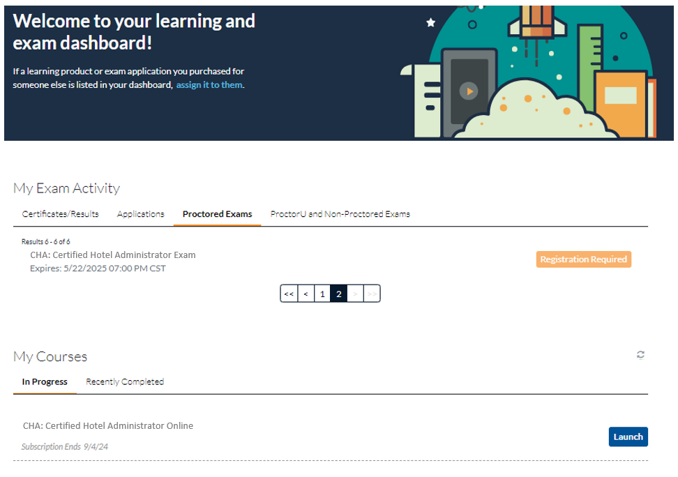 The courses/exams that are relevant to your program will be available from the Learning and Exam Dashboard.