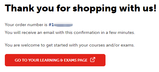 After checkout, you will receive an order confirmation email. You are also able to select "Go to your Learning & Exams page" directly from the order confirmation screen.