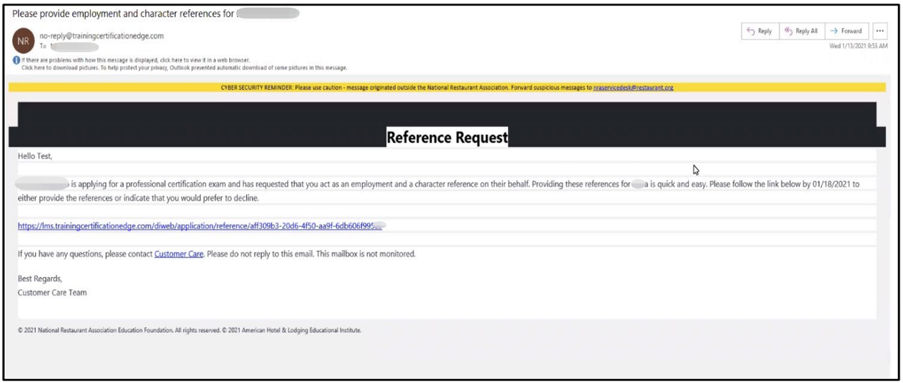 Your reference will receive an email and they will need to respond to your application request and provide employment confirmation and a character reference.