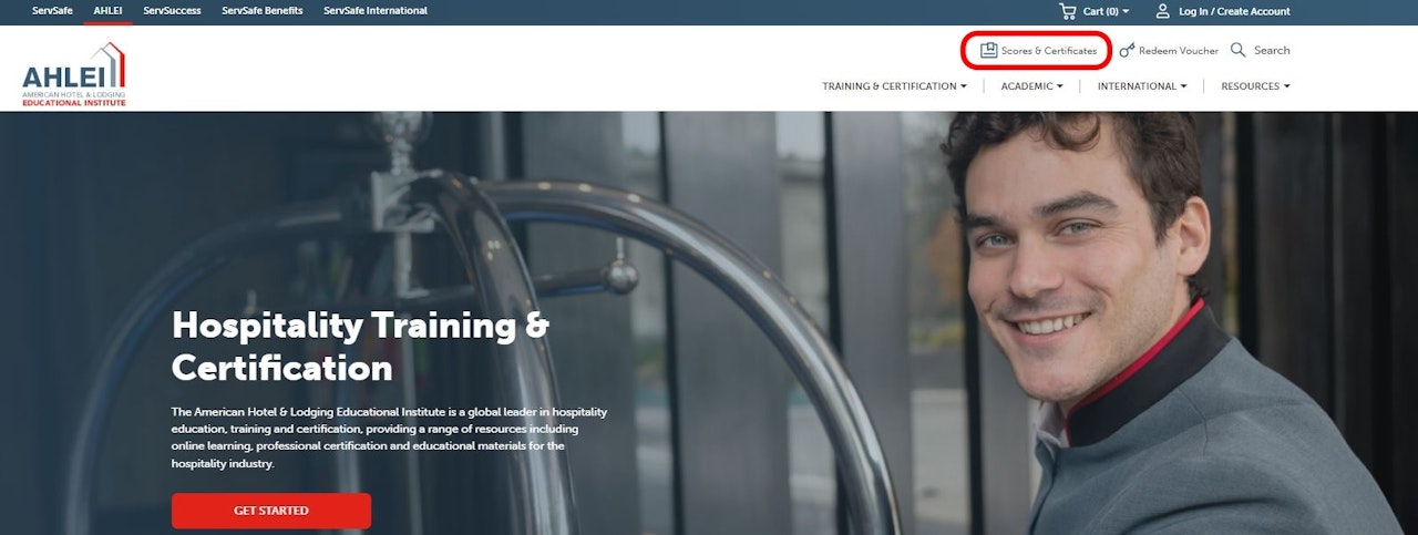 From the AHLEI website, select Scores & Certificates and log into your account.