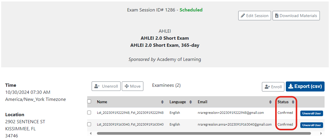 You will also be able to see who is enrolled by selecting View Details from your exam sessions list.