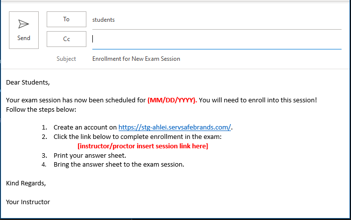 When your students enroll in the exam session, you will receive an email notification that they are enrolled.