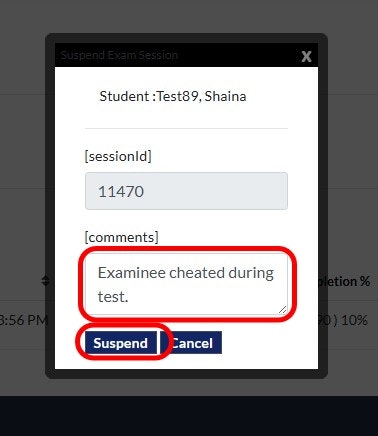 If an examinee is caught cheating during a proctored test, you may follow these steps to close the session.